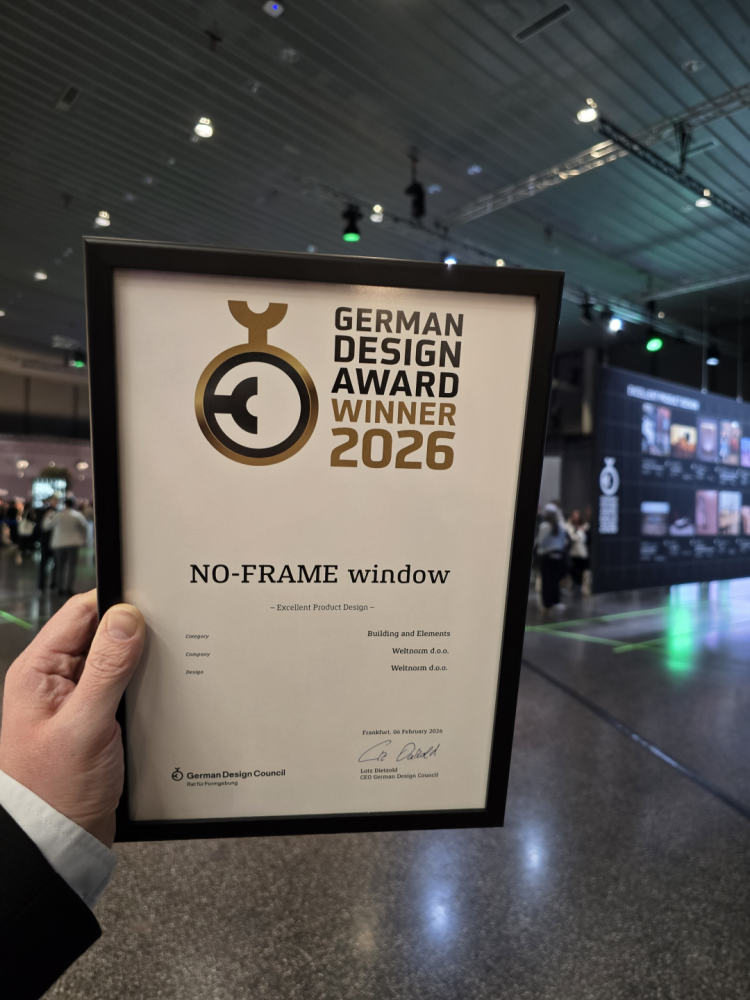 Weltnorm erhielt für das Fenster NO-FRAME den renommierten internationalen German Design Award 2026.