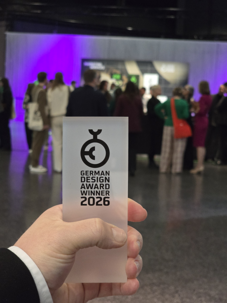 Die Auszeichnung haben wir am 6. Februar in Frankfurt im Rahmen der offiziellen Preisverleihung des German Design Council persönlich entgegengenommen. Die Veranstaltung vereinte Preisträger und Designexpert:innen aus aller Welt und unterstrich die Bedeutung von hochwertigem, durchdachtem und innovativem Design, das die Trends des zeitgenössischen Gestaltens maßgeblich prägt.